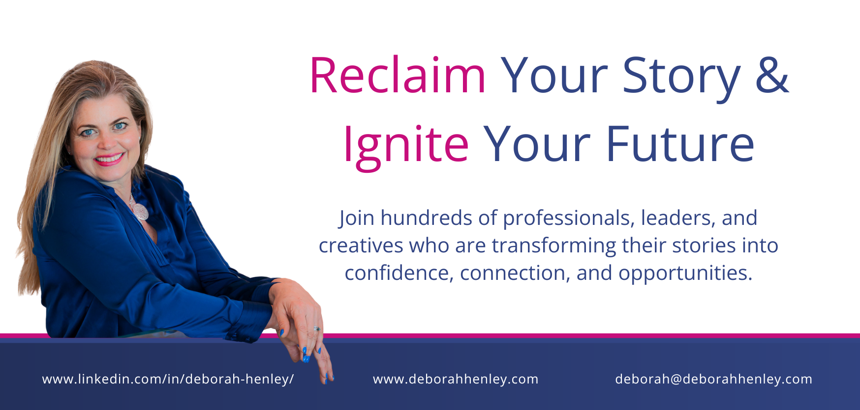 Deborah Henley is an international keynote speaker and author of Your Leadership Story, a Business Book Awards finalist. She helps people reclaim the experiences that shaped them and turn those moments into powerful stories that inspire others work she now delivers through her six-month programme supporting clients from Paralympians to Masterchef winners.